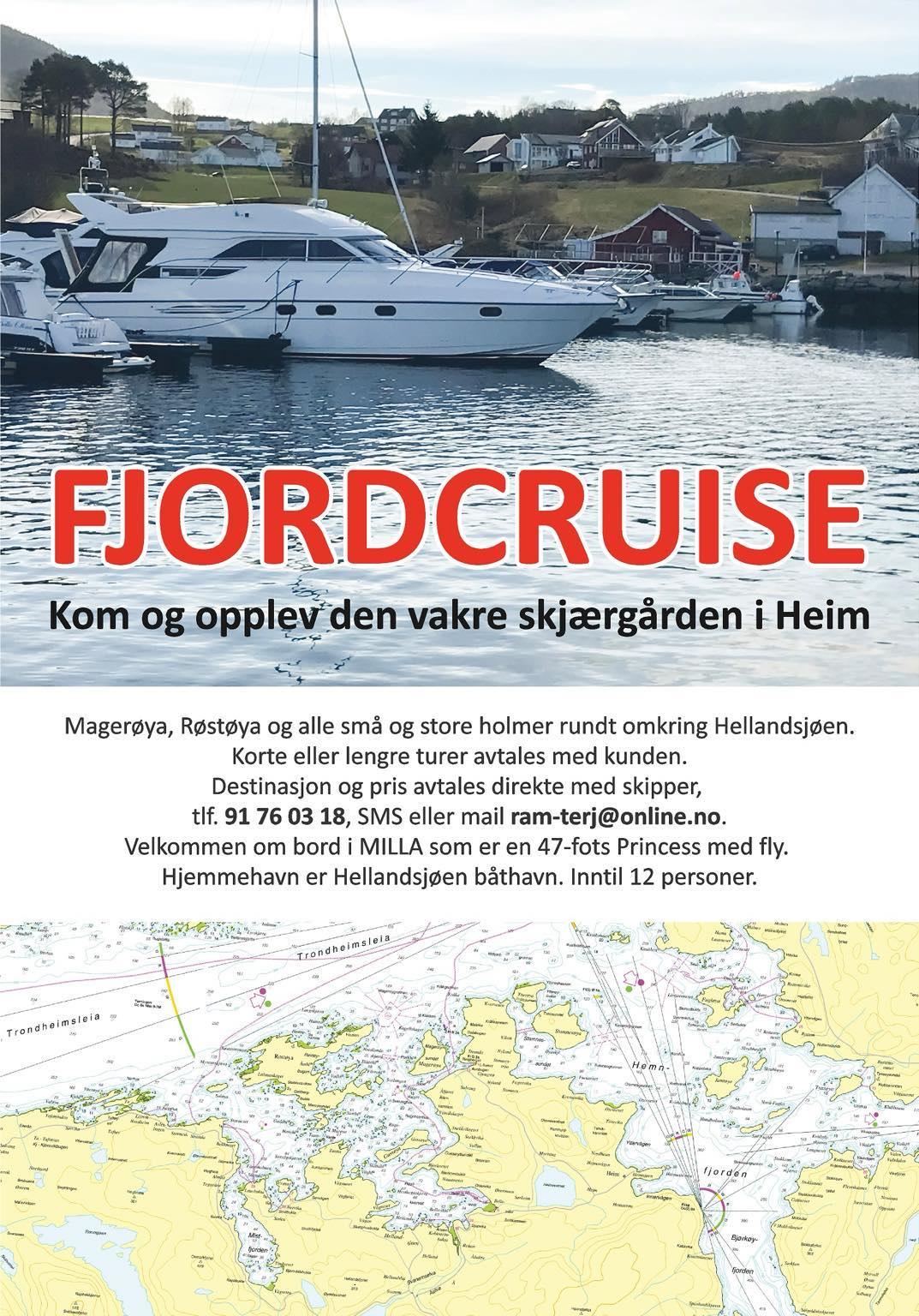 Velkommen ombord i MILLA som er en 47-fots princess med fly. Vi holder til i Hellandsjøen båthavn, og har mulighet til å ta med inntil 12. personer. Ønsker du å oppleve Magerøya, Røstøya og alle små og store holmer rundt omkring Hellandsjøen? Korte eller lengre turer avtales med kunden. Destinasjon og pris avtales direkte med skipper Terje Ramstad.
