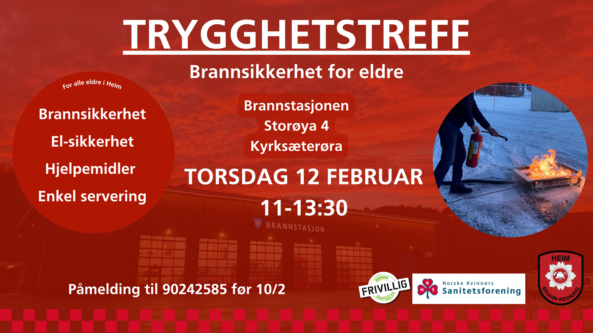 Vi holder nytt informasjonsmøte med Trygghetstreff for eldre i Heim. Innhold vil være: Brannsikkerhet El-sikkerhet HjelpemidlerDet vil være en pause med enkel servering.