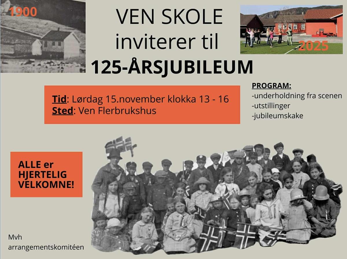 Bli med å feire Ven skoles 125-årsjubileum lørdag 15.november, kl. 13.00-16.00 på Ven Flerbrukshus.